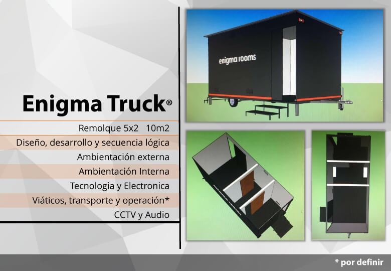 Remolque 5x2 10m2, diseño, desarrollo y secuencia lógica, ambientación externa, ambientación interna, tecnología y electrónica, viáticos, transporte y operación, CCTV y audio.